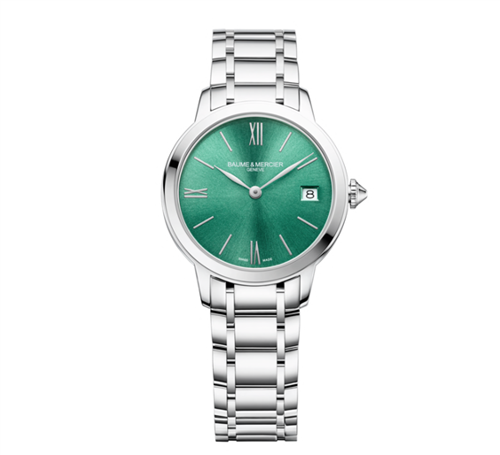 Classima 10609 OROLOGIO AL QUARZO, DATARIO - 31 MM Illuminato da un quadrante verde chiaro con numeri romani, questo lussuoso orologio al quarzo da donna propone un’estetica pulita e moderna, equilibrata da dettagli classici. È accompagnato da un bracciale in acciaio, ideale per ogni occasione.