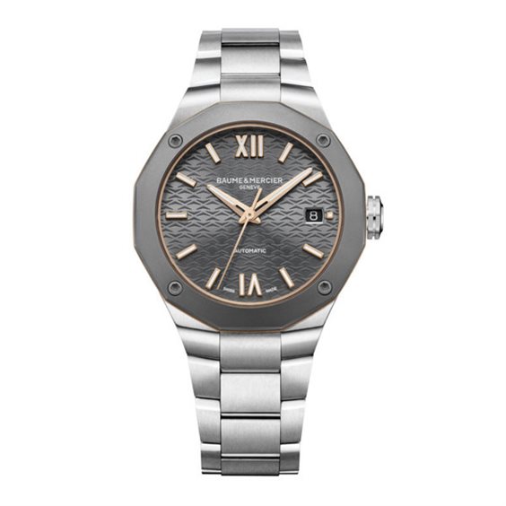 OROLOGIO BAUME ET MERCIER RIVIERA 10661, CASSA DODECAGONALE IN ACCIAIO 36MM CON LUNETTA IN TITANIO SABBIATO E ANELLO IN ACCIAIO DORATO ROSA.