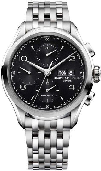 OROLOGIO BAUME ET MERCIER CLIFTON CHRONO ACCIAIO CON BRACCIALE ACCIAIO, QUADRANTE NERO CON GIORO E DATA. MOVIMENTO AUTOMATICO
