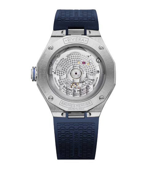 Animato dal prestigioso calibro di Manifattura Baumatic, il Riviera 10714 è l’orologio svizzero “all road” per eccellenza. Il quadrante in vetro zaffiro blu fumé trasparente, il cinturino intercambiabile in caucciù/pelle di alligatore e il fondello aperto completano il look sportivo di questo segnatempo “Swiss Made”.