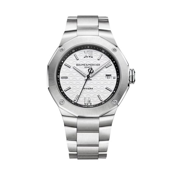 Il Riviera 10829 si distingue per il contrasto bianco-nero, audace e armonioso. Il quadrante bianco con decoro a onde è evidenziato da un rehaut nero. I numeri romani e gli indici rivettati e rodiati, come le lancette sfaccettate, sono rivestiti di Superluminova bianco. La lancetta nera dei secondi e il logo Phi sul contrappeso accentuano questo design bicolore. L'orologio è dotato di un movimento automatico SW200 con riserva di carica di 38 ore e impermeabilità fino a 10 ATM. Il bracciale intercambiabile in acciaio inossidabile è dotato di un sistema affidabile per la sostituzione senza l'uso di attrezzi. Dedicato ai momenti personali, il Riviera 42 mm 10829 rivela in modo eloquente la percezione del tempo di chi lo indossa. Quest'uomo si sente padrone del suo tempo e della sua vita. Sicuro di sé, sa cosa vuole e cosa si aspetta dall'orologio che ha scelto per accompagnarlo in ogni momento della sua vita. È sicuro della sua scelta perché punta sull'affidabilità e sulla buona fattura; sul patrimonio di una Maison la cui eccellenza orologiera si perpetua da quasi 200 anni. Il quadrante in bianco e nero, in stile anni '50, evoca l'equilibrio, l'armonia e la bellezza dei contrasti della vita. Il ritmo di questo segnatempo mette alla prova chi lo indossa, che accetta la sfida, conquistato dal suo irresistibile brio.