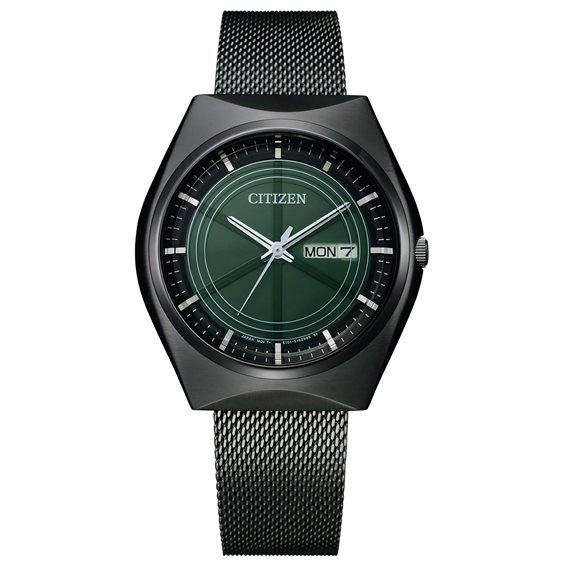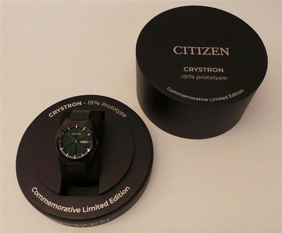 CITIZEN CRYSTON Special Edition a tiratura limitata di 750 pz. del primo prototipo di orologio a carica solare ( anno 1974 ). Ogni orologio è numerato sul fondo cassa . Cassa in acciaio con trattamento IP ( Ion Plated ) nero lucida ed opaca, diametro 38mm.- spessore 10 mm. Bracciale regolabile maglia Milano in acciaio con tratt. IP nero . Vetro minerale ad alto spessore . Quadrante verde con celle solari a disposizione radiale in vista . Movimento Eco Drive con riserva di carica a 180 giorni . Imprmeabile 5 bar ( 5 atm. ). Scatola e libretto istruzioni originali. Garanzia 2 anni.