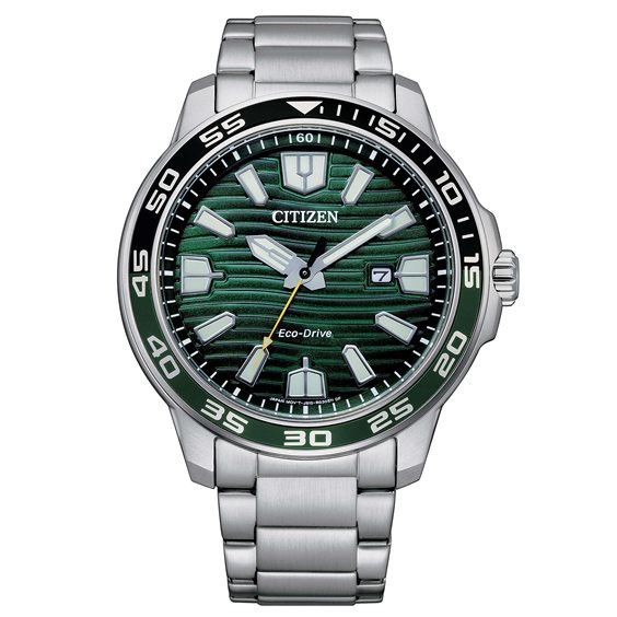 OROLOGIO CITIZEN MARINE SPORT - SOLO TEMPO CASSA in acciaio Lucido e satinato con GHIERA nera fissa del DIAMETRO di 45mm. MOVIMENTO Eco Drive (a carica luce infinita)con RISERVA DI CARICA 240 giorni. QUADRANTE verde con indici e lancette ad alta luminosita’. VETRO minerale. BRACCIALE regolabile in acciaio satinato e lucido, chiusura deployante con pulsanti. IMPERMEABILE 10 bar (atm).Scatola GARANZIA 24 mesi, libretto istruzioni originale.