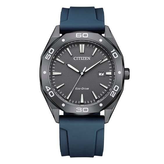 Orologio solo tempo uomo collezione Metropolitan Sport. Cassa ottagonale in acciaio lucida e spazzolata con trattamento IP grey , fondo a vite. Movimento Eco Drive (a carica luce infinita) con riserva di carica 180 giorni. Quadrante grigio con indici e lancette luminescenti data a ore 3. Vetro minerale. Cinturino in gomma blu con ardiglione e logo. Impermeabile 10 bar (atm). Scatola e libretto originale. Garanzia 5 anni.