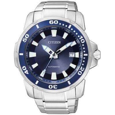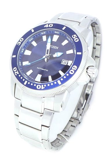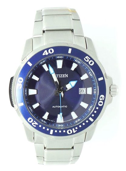 Orologio uomo meccanico automatico , cassa e bracciale in acciaio, fondello e corona a vite, diametro cassa 43mm., impermeabile 10atm.(100m.), quadrante blu.