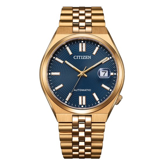 Orologio Automatico solo tempo Uomo Citizen modello Tsuyosa 60. Cassa e bracciale in acciaio placcato oro rosa lucido e satinato fondo a vite con vista movimento, corona posizionata a ore 4. Nuovo Movimento Meccanico Automatico Citizen Cal. 8310 21 rubini , 21.600 oscillazioni all'ora , riserva di carica 60 ore. Vetro Zaffiro antigraffio. Quadrante blu con lavorazione guilloché indici e lancette luminescenti data a ore 3. Bracciale regolabile chiusura a farfalla con pulsanti. Impermeabile 5 atm. Scatola e Garanzia 5 anni originali.