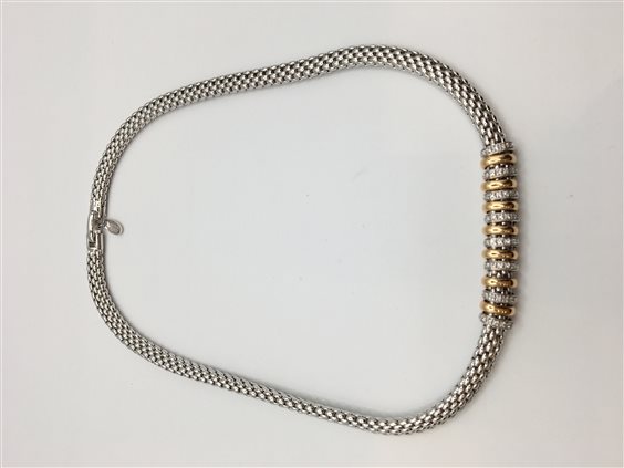 Collana Fope in oro giallo con motivo centrale formato da 15 ovalini alternati in oro giallo e oro bianco con brillantini