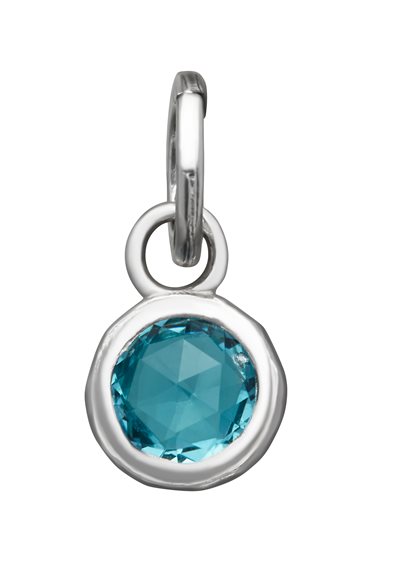 Mini Charm Crystal Azzurro, realizzato completamente a mano in azienda. Un cristallo azzurro sfaccettato e luminosissimo, protetto da una fascetta in argento, di sorprendente eleganza. Perfezione in miniatura. Altezza cm.1,30 (esclusa maglina di cm.0,80).