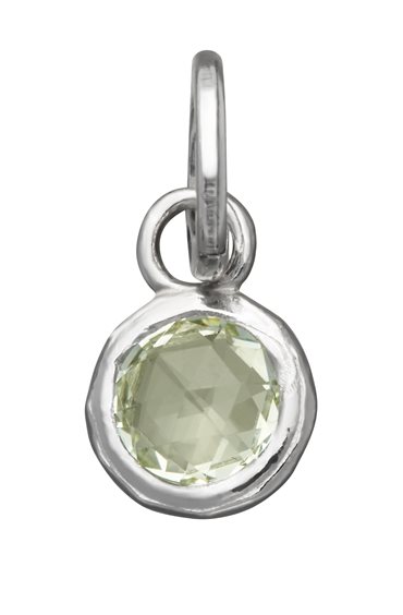 Mini Charm Crystal Verde Lime, realizzato completamente a mano in azienda- Un cristallo verde lime sfaccettato e luminosissimo, protetto da una fascetta in argento, di sorprendente eleganza. Perfezione in miniatura. Altezza cm.1,30 (esclusa maglina di cm.0,80).