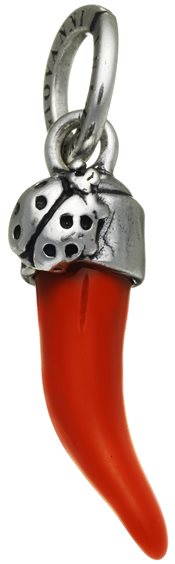 Charm Cornetto Rosso con Coccinella, in argento e metacrilato rosso. Altezza cm.2,70 (esclusa maglina con logo cm.0,90).