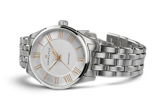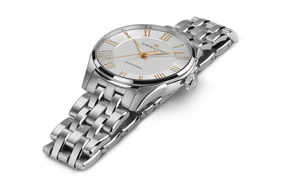 COLLEZIONE: MOVIMENTO: automatico Swiss Made - Calibro H-10 RISERVA DI CARICA: 80 ore QUADRANTE: argento con numeri romani. Lancette e numeri in PVD oro Giallo VETRO: zaffiro FUNZIONI: 3 sfere BRACCIALE: in acciaio con fibbia deployante GARANZIA UFFICIALE 24 mesi