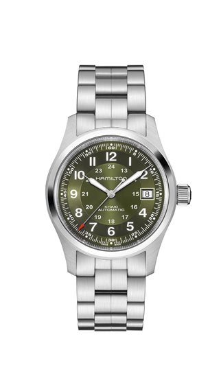 Ispirato all’originale orologio militare, il Khaki Field Automatic unisce tradizione militare e design contemporaneo in un modello versatile, pensato per i pionieri moderni. Combinando un quadrante verde kaki finitura soleil con un effetto a spirale sull’anello delle ore, il quadrante riflette la luce aggiungendo texture e profondità. Progettato per l’azione e l’avventura, l’esclusivo calibro automatico H-10 offre fino a 80 ore di riserva di carica, per un orologio che non ti deluderà mai.