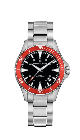 Hamilton Khaki Navy Scuba auto H82405130 Nuovo orologio diver della collezione Khaki Navy che con il quadrante verdone ha uno stile pensato per fare colpo. Il suo design accattivante presenta una cassa di 40 mm in acciaio inossidabile, con quadrante color nero e ghiera girevole unidirezionale rossa, protetto da vetro zaffiro e abbinato ad un bracciale in acciaio. Il modello è dotato di un movimento automatico Swiss-made a tre sfere con data e riserva di carica superiore di 80 ore. L'H-10 presenta elaborati motivi colimaçon e perlati a contrasto per i modelli American Classic e superfici pulite per gli orologi da pilota. Il modello è resistente all'acqua fino a 10 bar (100m).