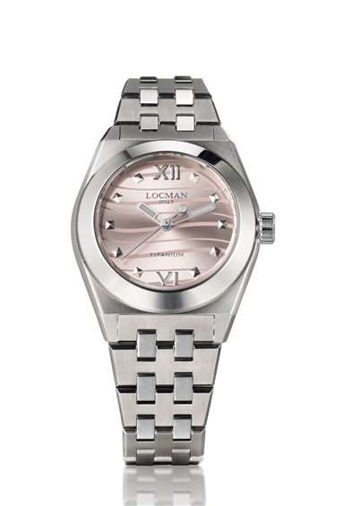 Orologio Locman Stealth. Cassa (mm 36) e cinturino in titanio. Quadrante sunray rosa con indici applicati. Movimento (myota) solo tempo. Vetro zaffiro. Impermeabilità 20 atmosfere. Possibilità di piccola incisione sul fondo. IN CASO DI INCISIONE NON SARA' POSSIBILE IL RESO.