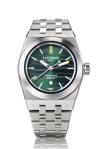 MOVIMENTO SOLO TEMPO QUARZO MIYOTA, CASSA IN TITANIO 42 MM, QUADRANTE SUNRAY CON INDICI STAMPATI, ANSA DA 22MM, VETRO ZAFFIRO, IMPERMEABILITÀ 20 ATM. Per la nuova linea Stealth LOCMAN impiega il Titanio, una lega difficile da lavorare, ma con caratteristiche che le conferiscono una capacità performante eccezionale. Proprio con questo il Titanio rientra tra i materiali più apprezzati anche dall’industria aereonautica. Tra gli aspetti rilevanti del Titanio figurano senz’altro la leggerenza e la rigidità, elementi prioritari per la costruzione di orologi ad alto contenuto tecnico. Questa combinazione assicura infatti un’elevata stabilità delle parti dell’orologio, anche quando sottoposte a pressioni elevate, ad esempio durante le immersioni subacquaee.