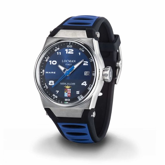 Orologio al quarzo Da Uomo Di Locman Della Collezione Marina Militare. Orologio Realizzato Con Cassa In Acciaio E Titanio Di Forma Rotonda Di Dimensioni Di 44 Mm. Il Quadrante Ha Indici Stampati. Orologio Con Cinturino Silicone. La Resistenza All'Acqua È Di 10Atm. Orologio Dotato Di Datario.