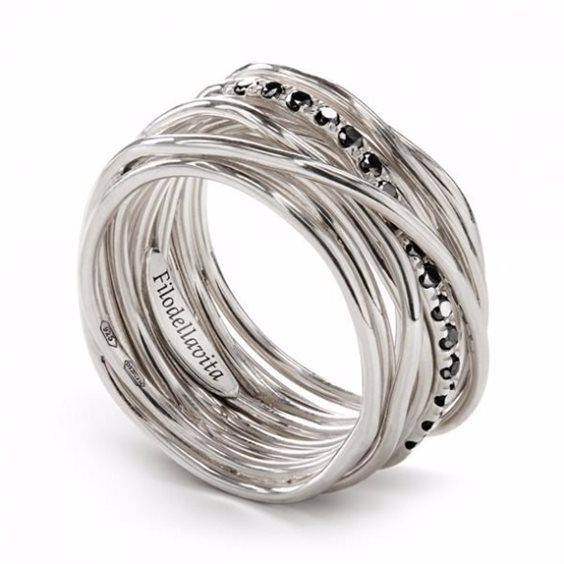 Il nostro classico intramontabile, Anello Filodellavita Classic Collection 13 fili in Argento 925 arricchito al Palladio, impreziosito da un riviere di 16 diamanti brown o black taglio brillante da 0.21 kt. Il numero 13 ha un simbolismo molto forte e di grande potere, indica rinnovata passione e motivazione.