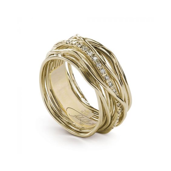 ANELLO FILODELLAVITA - CLASSIC COLLECTION 13 Fili in Oro Giallo 9kt e 16 Diamanti Bianchi 0.18ct