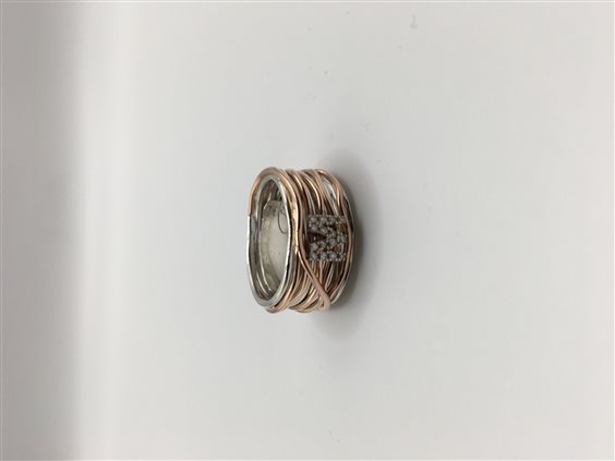 Anello Filodellavita Classic Collection, 13 Fili in Argento e Oro Rosa 9kt con letterina in Oro Bianco 18 kt di diamanti bianchi (lettera M)