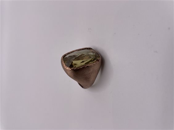 ANELLO ARTIGINALE IN BRONZO CON TOPAZIO CITRINO GIALLO TAGLIO SFACCETTATO