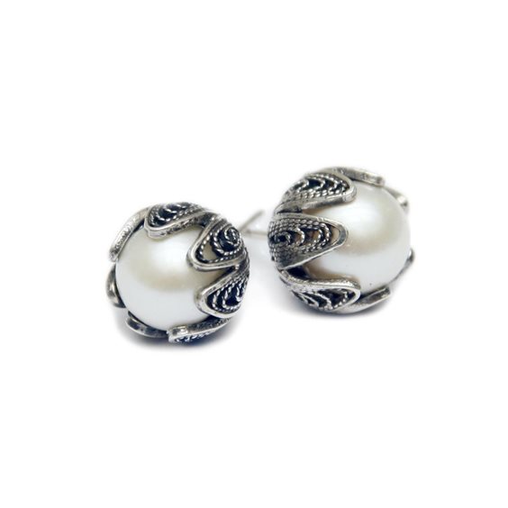 ORECCHINI A LOBO ARGENTO CON PERLA GOLD (1,3 CM DIAM)